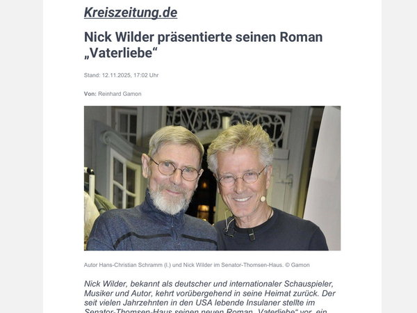 In der Presse Beim Klick auf das jeweilige Vorschaubild öffnet sich ein PDF – zum Lesen, herunterladen oder ausdrucken. Bunte Merkur Kreiszeitung Mitteldeutsche Zeitung RND – „Zu Tisch mit …“ Sönke Möhl t-online Vodafone live Plakat Buchvorstellung